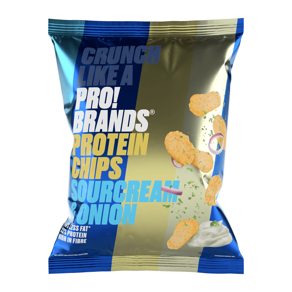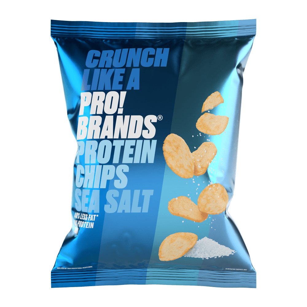 Proteīna čipsi - kraukšķīgi kartupeļu čipsi ar augstu šķiedrvielu saturu un 24% olbaltumvielu īpatsvaru.